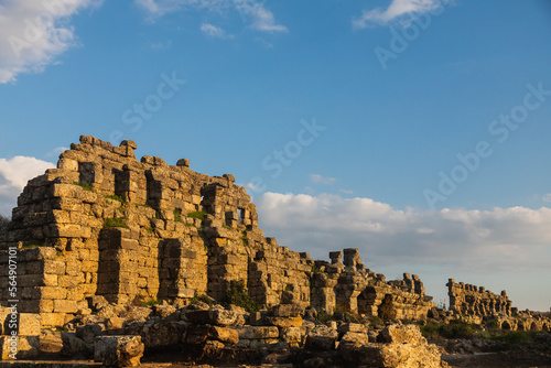 © Виталий Сова, Fototapeta premium An antique ruined city of columns.Ruin. View of the ancient city in Side, Turkey.
