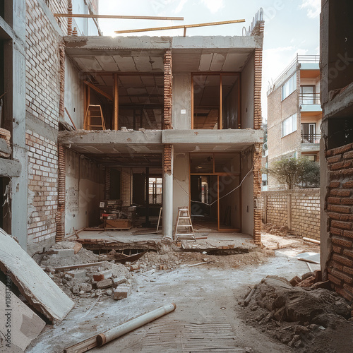 Obraz premium An apartment in construction that has only ground floor built with bricks and...