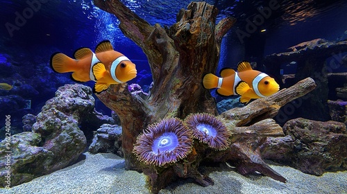 © Alice, Fototapeta premium An aquarium with two clownfish and anemones