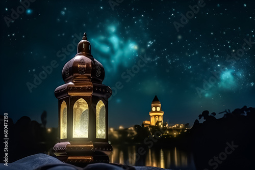 Fototapeta premium An Arabic lantern stands in the foreground, in the background there is a...
