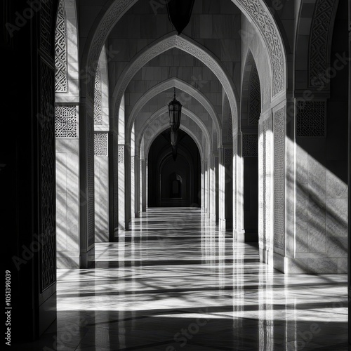 © Sinergi Digital, Fototapeta premium An arched corridor in the Grand Mosque