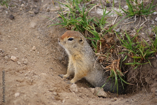 © Lateman, Fototapeta premium An arctic ground squirrel looking out from the hole