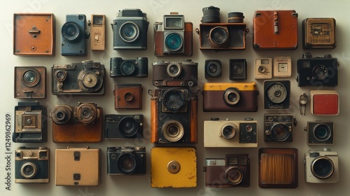 © @_ greta, Obraz premium An Array of Classic Vintage Cameras: A Nostalgic Photography Collection