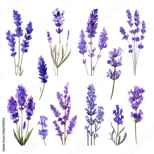 Fototapeta premium An array of lavender flowers, with their vibrant purple hues, are arranged...