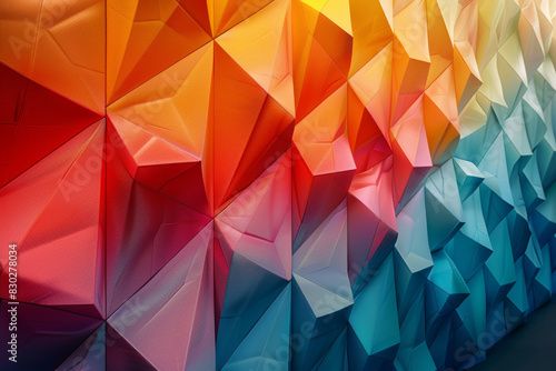© Sebastian, Obraz premium An array of vibrant geometric shapes interlaced in a dynamic pattern. Concept of abstract art and modern design. Generative Ai.