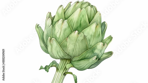 © JK_kyoto, Obraz premium An artichoke illustrated with layered watercolor petals isolate on white background