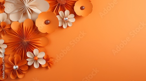 © Miva, Naklejka premium An artistic arrangement of orange and white paper flowers on a complementary background