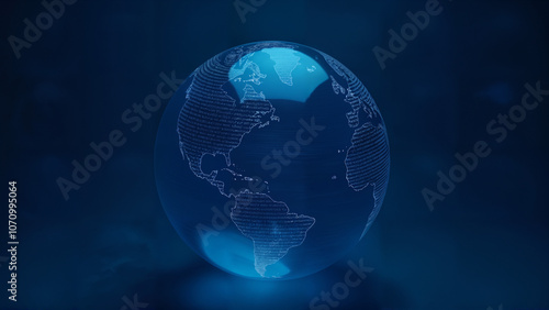 Fototapeta premium An Artistic Glass Globe with Swirling Code Representing Programming Languages Against a Solid Dark Blue Backdrop