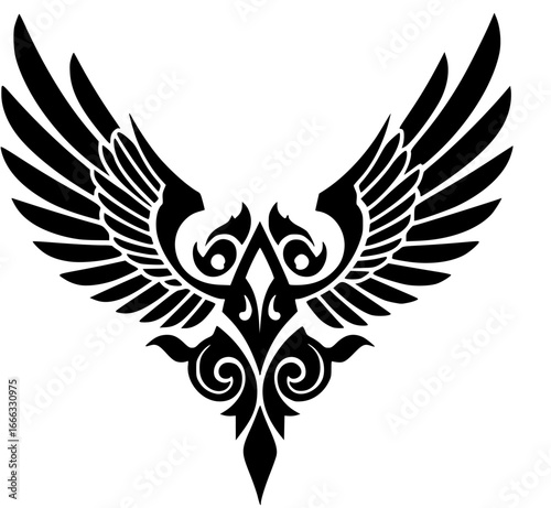 Obraz premium An artistic illustration of two symmetrical winged emblem featuring unique...