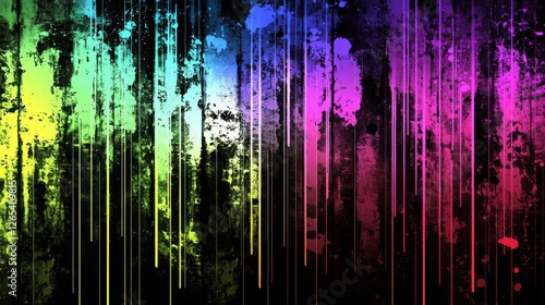 © NeuralStudio, Obraz premium An artistic illustration showcasing a vibrant abstract background with streaks of colorful paint splashing down over a dark canvas.