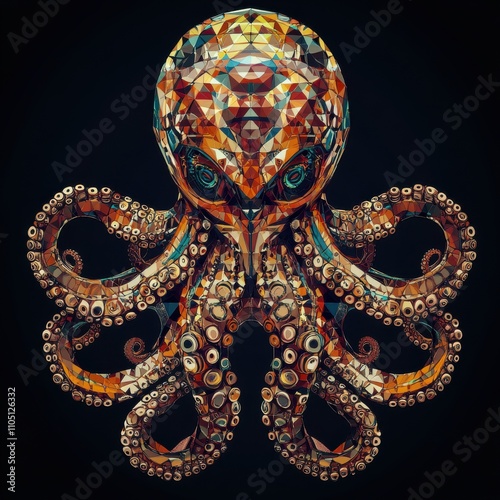 Fototapeta premium An artistic octopus design featuring vibrant colors and geometric shapes,...