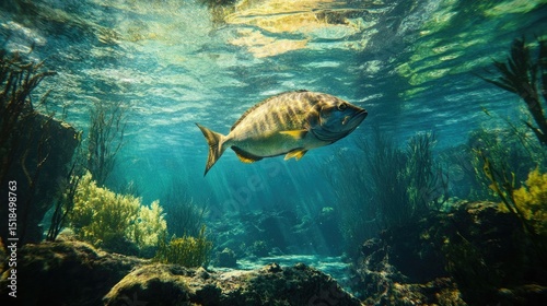 © Fouzia, Fototapeta premium An artistic representation of a Mahi Mahi swimming in crystal-clear waters