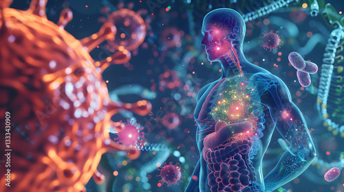 Obraz premium An Artistic Visualization of the Diverse Microbial Ecosystem inside the Human...