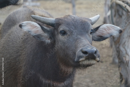 © newAnjae, Fototapeta premium An Asian black buffalo is standing in the field