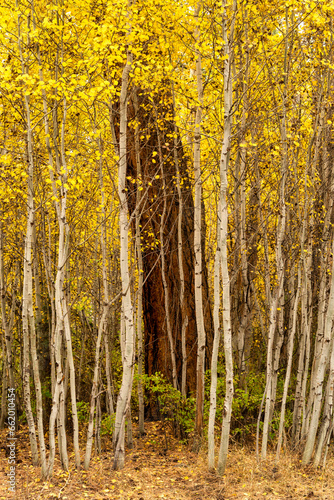 © Wasim, Fototapeta premium An aspen grove with Ponderosa Pines in Bend Oregon during fall color