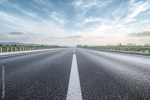 Fototapeta premium An asphalt road with a solid white line stretches into the distant horizon