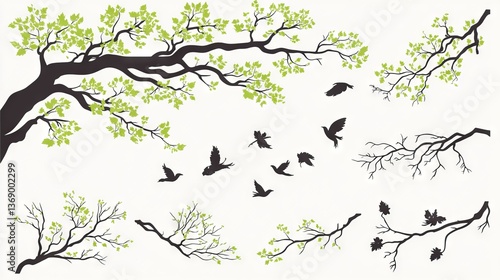 © MKS, Naklejka premium An assortment of tangled jungle branches with leaves, set against a transparent background, created using modern