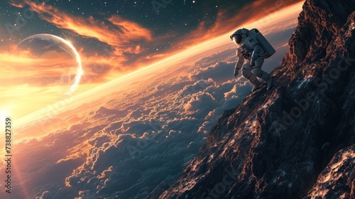 © Joyce, Obraz premium An astronaut and beautiful view of planet in space.
