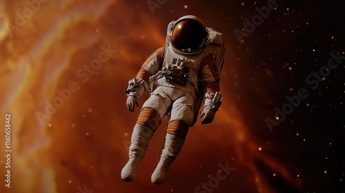 Fototapeta premium An astronaut floats in mid-air, with a bright orange background