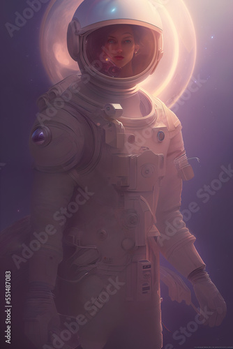 © Fernando, Fototapeta premium An astronaut landing on a new planet with a civilization