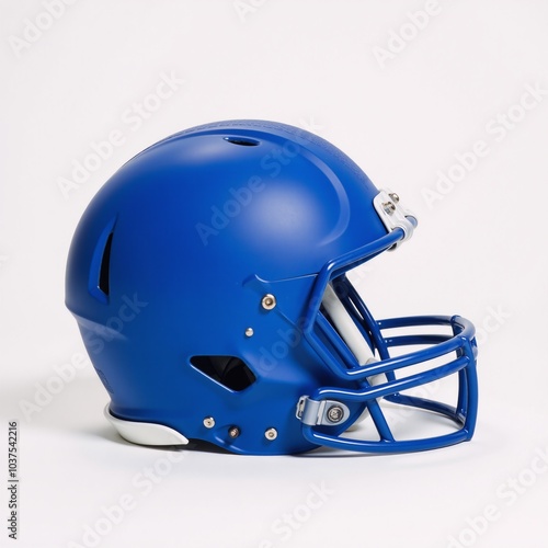 © Pixel Matrix, Fototapeta premium An asymmetric blue football helmet stands alone against a pure white background