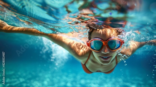 © Joyce, Fototapeta premium An athlete swimming in water with water splash in pool