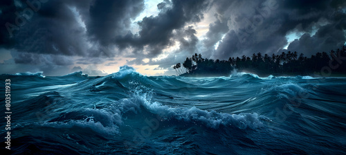 Fototapeta premium An atoll during a storm, with dramatic clouds and choppy sea captured in high...