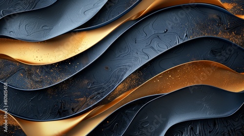 © Aliaksandra, Obraz premium An attention-grabbing template combines abstract luxury with rich gold, black, and blue tones, creating a captivating visual experience