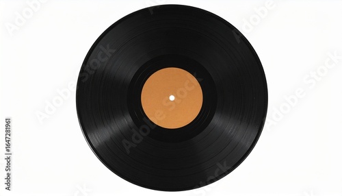 © rizqiono, Obraz premium An authentic analog LP record with grooves and a blank orange label, shown in high resolution and isolated on a white background.