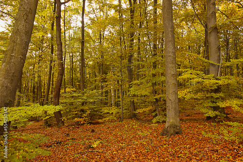© tillottama, Obraz premium an autumn forest landscape. Autumn deciduous forest