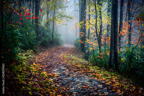 Obraz premium An Autumn Morning on a Tranquil North Carolina Hiking Trail