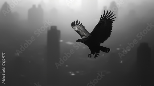 © frimufilms, Obraz premium An eagle flying over a city