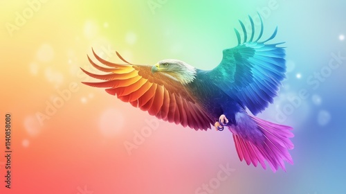 © QuietWord, Obraz premium an eagle flying with wing spread in the air with pastel light background
