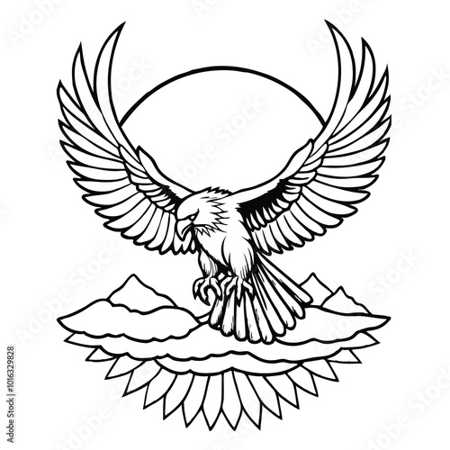 © bdsabira, Fototapeta premium an-eagle-in-mid-flight--wings-spread-wide-against-.eps