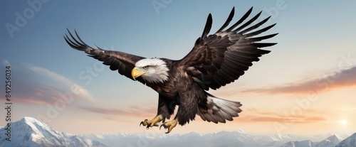 Obraz premium An eagle is flying in the blue sky. Bald eagle flying against a clear blue...