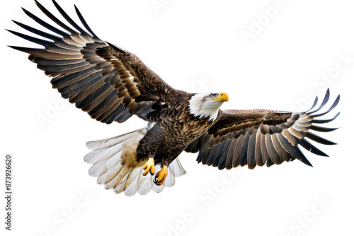 Naklejka premium An eagle mid-soar, wings wide, isolated on a white background