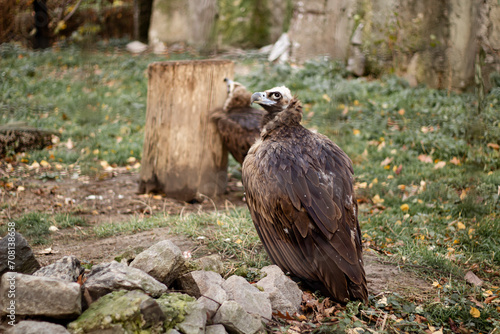 © Vella, Fototapeta premium An eagle on the ground looks up at the sky.