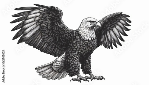 © Bas SketchEngraving, Obraz premium an eagle, sketch engraving illustration. Scratch board imitation. Black and white image.