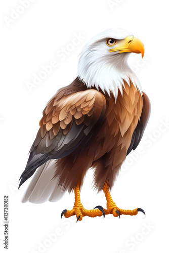 Obraz premium An eagle standing majestically, isolate on white background, showing its...