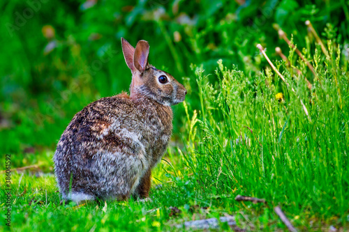 © Manu Nair, Fototapeta premium An Eastern Cottontail Rabbit in the evening golden light