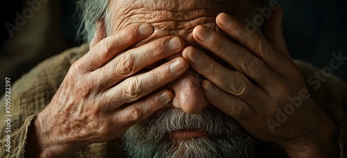 © SkoldPanda, Fototapeta premium An Elderly Person Showing Deep Emotions Through Hand Gestures