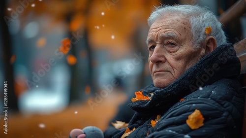 Obraz premium An elderly person sitting on a bench is looking sad and reflective, with a...