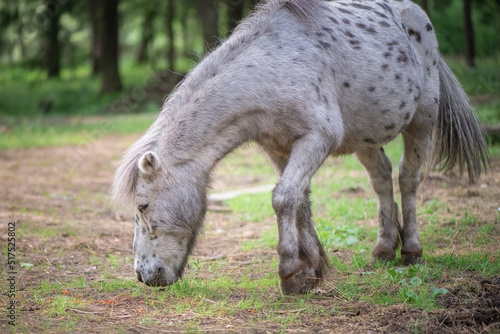 © shymar27, Fototapeta premium An elderly thoroughbred pony is playing in the forest.