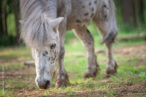 Fototapeta premium An elderly thoroughbred pony is playing in the forest.