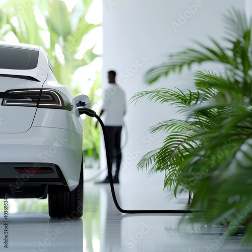© cff999, Fototapeta premium an electric car is parked on the side of the road