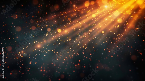 Obraz premium An elegant abstract design of golden light rays and shimmering bokeh particles on a dark backdrop.