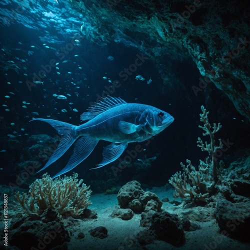 Naklejka premium An elegant betta fish with flowing fins in an underwater garden.
