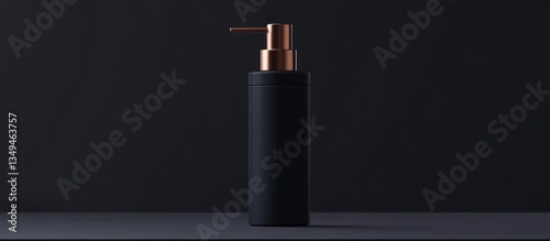 © Miftahul, Fototapeta premium An elegant black soap or lotion dispenser against dark background