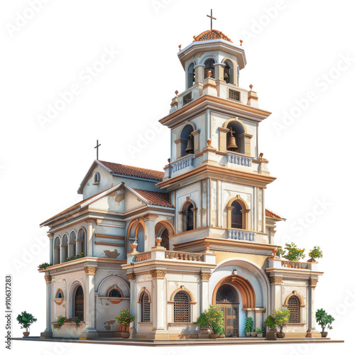 © BoOm, Obraz premium An elegant church building with intricate architecture and decorative elements, showcasing a peaceful and religious atmosphere. transparent background