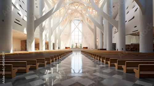 Obraz premium An elegant church interior with high ceilings and ornate architecture,...